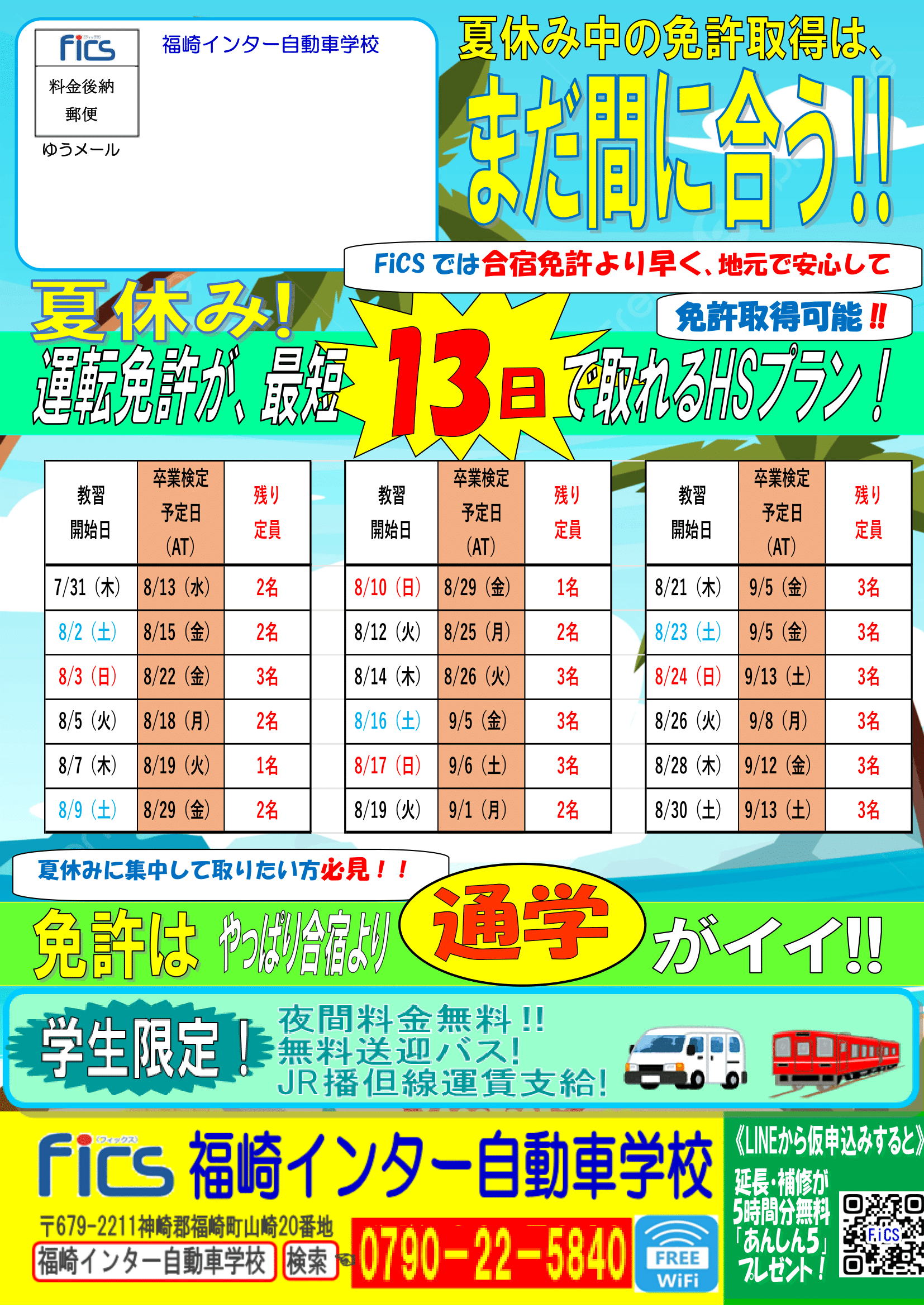 夏休み中の免許取得、まだ間に合います!いますぐお問い合わせを!