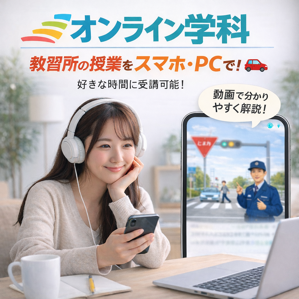 学科教習は、ご自身のスマホやPCを使って24時間いつでもどこでも受講できるオンライン形式を採用。教習所に来ていただくのは技能教習の時だけでOKです。空いた時間を有効活用し、アルバイトや学業と両立しながら最短卒業を目指せます。